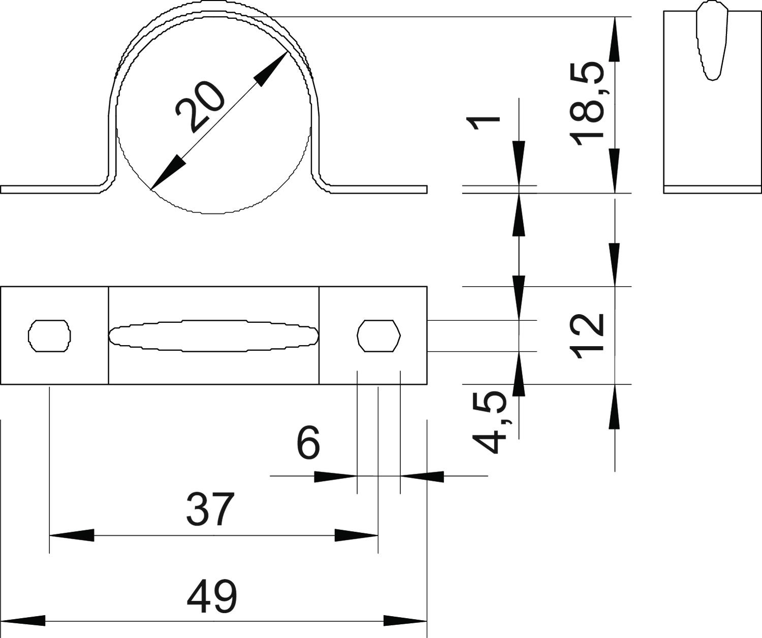 В пластмассовой оболочке нет Вид крепления отверстие под винт Высота 18,5 mm Диапазон зажима D макс. 20 mm Диапазон зажима D мин. 20 mm Длина 49 mm для диаметра 20 Исполнение С двумя лапками Количество кабелей/труб 1 Материал Алюминий Не содержит галогенов да Номинальный диаметр 20 mm Подходит для зоны противопожарной безопасности нет Прочность материала 1 mm Размер Н 18,5 mm Размер 20mm Размер b 12 mm Размер B 37 mm Размер D 20 mm Размер е 6 mm Размер отверстий 4,5 x 6 Размер A 49 mm Размер d 4,5 mm Размер t 1 mm Расстояние до стены нет Углеродный след CO2 (GWP) от колыбели до ворот 0,043 кг CO2e / 1 Шт. Устойчив к УФ да Ширина 12 mm - Все виды