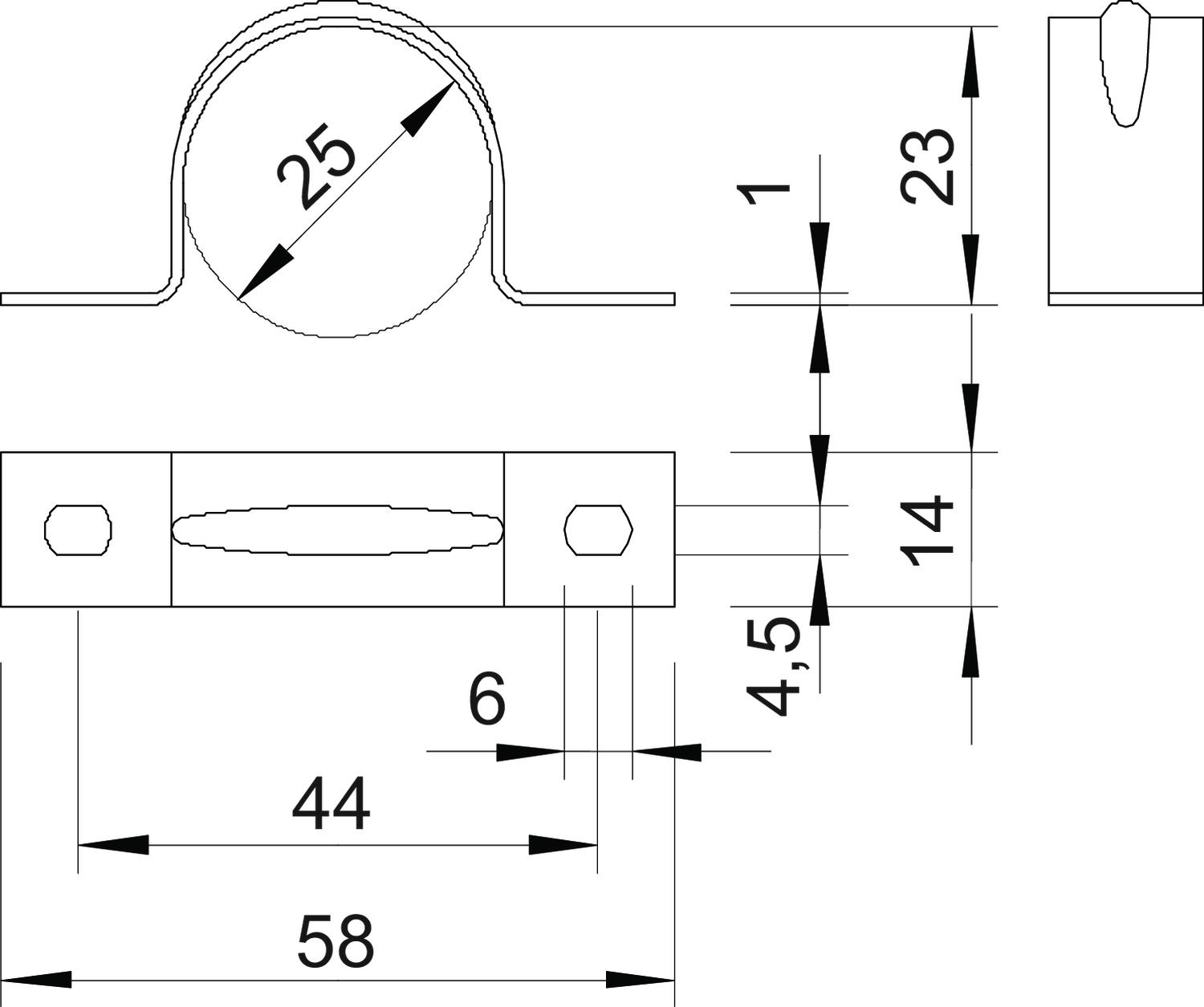 В пластмассовой оболочке нет Вид крепления отверстие под винт Высота 23 mm Диапазон зажима D макс. 25 mm Диапазон зажима D мин. 25 mm Длина 58 mm для диаметра 25 Исполнение С двумя лапками Количество кабелей/труб 1 Материал Алюминий Не содержит галогенов да Номинальный диаметр 25 mm Подходит для зоны противопожарной безопасности нет Прочность материала 1 mm Размер Н 23 mm Размер 25mm Размер b 14 mm Размер B 44 mm Размер D 25 mm Размер е 6 mm Размер отверстий 4,5 x 6 Размер A 58 mm Размер d 4,5 mm Размер t 1 mm Расстояние до стены нет Углеродный след CO2 (GWP) от колыбели до ворот 0,059 кг CO2e / 1 Шт. Устойчив к УФ да Ширина 14 mm - Все виды