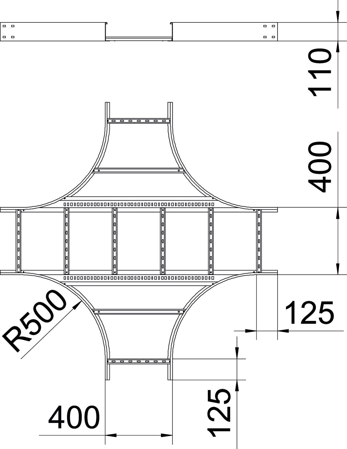 Описание продуктаCross-over for the creation of horizontal branches, fitting for cable ladders of side height 110 mm. With connector perforation. Can be used in indoor areas. Connector and fastening material must be ordered separately. Fittings must be supported by the support structure.