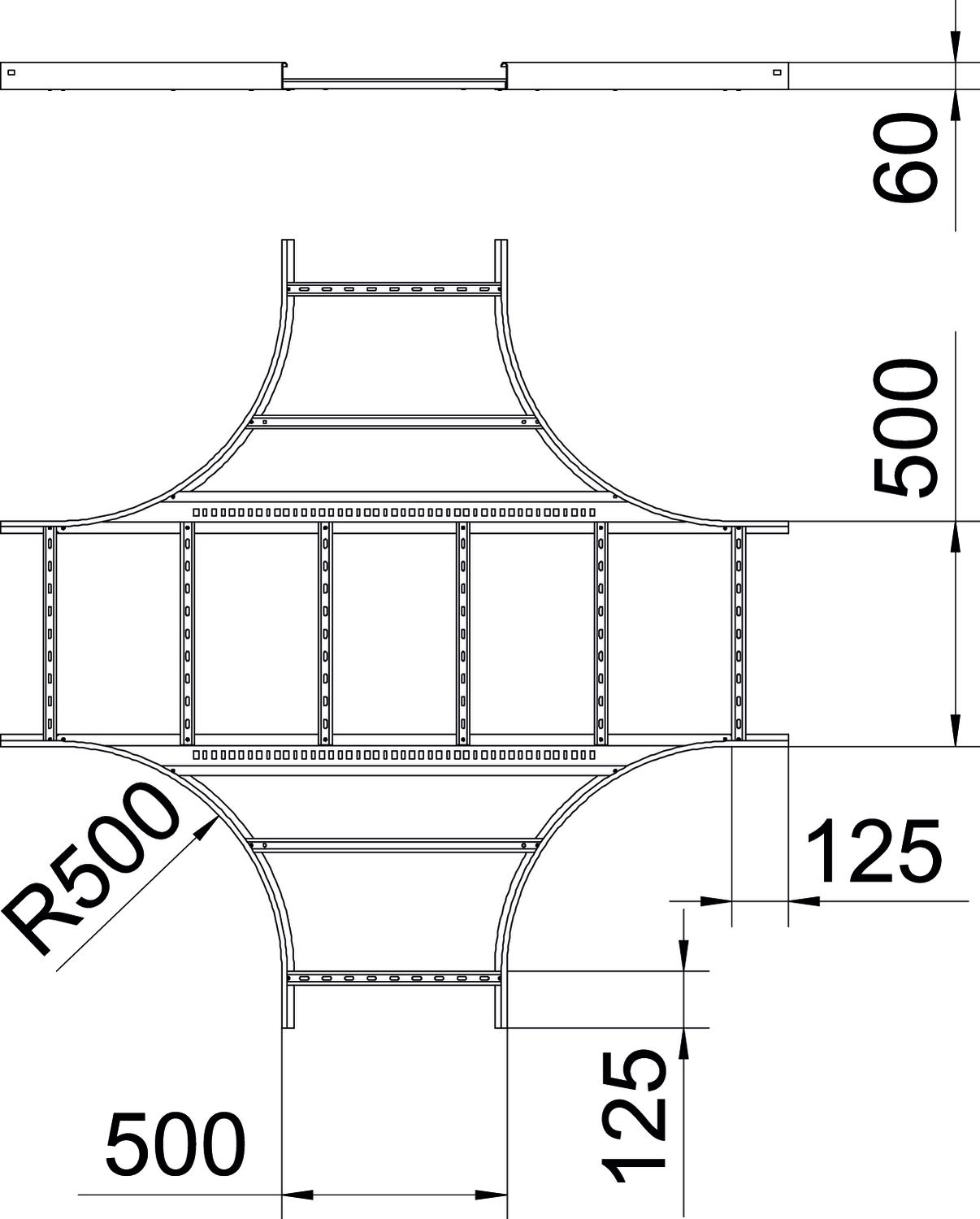 Описание продуктаCross-over for the creation of horizontal branches, fitting for cable ladders of side height 60 mm. With connector perforation. Can be used indoors and outdoors. Connector and fastening material must be ordered separately. Fittings must be supported by the support structure.