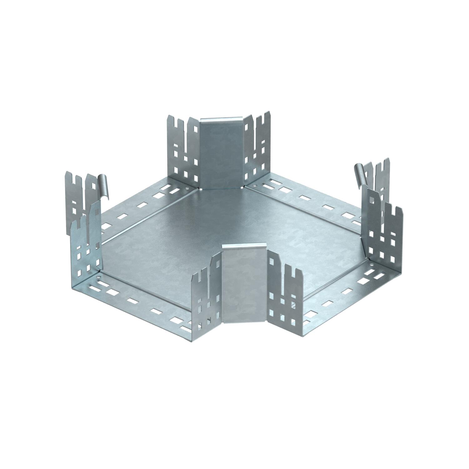 Описание продуктаКрестообразная секция с системой соединителей для быстрого монтажа. Для всех типов кабельных лотков, высота боковой стенки которых составляет 110 мм.