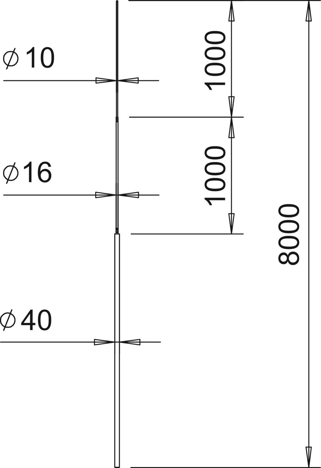 Диаметр 40 mm Длина 8000 mm Изолированное исполнение с высоким пробивным напряжением нет Исполнение Молниеприемный стержень со штативом Материал Алюминий Номинальный размер Ø 40/ 16/ 10 mm Размер Н 1000 mm Размер 8000mm Размер B 6000 mm Размер D 1000 mm - Все виды