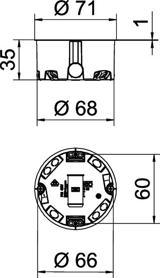 Вид защиты IP30 Вид прохода через корпус Продавливаемое отверстие воздухонепроницаемая нет Высота 35 mm Диаметр 68 mm Диаметр фрезерного отверстия 68 mm Количество вводов 6 Крепление крышки Болты Крепление устройств Болты Крышка без Линейные вводы 3 x 1,5 мм² 4 Линейные вводы 3 x 2,5 мм² / 5 x 1,5 мм² 2 Материал Полипропилен Не содержит галогенов да Номинальное сечение макс. 2,5 mm² Номинальное сечение мин. 1,5 mm² Подходит для пластин толщиной макс. 28 mm Подходит для пластин толщиной мин. 5 mm Размер Ø68mm, H35mm Расчетное напряжение 400 V С винтами да С переходником Соединительный штуцер Способ ввода Провода NYM и телекоммуникационные провода Трудновоспламеняющийся согласно VDE 0471/IEC 60695-2-11, температура при испытании 850 °C Углеродный след CO2 (GWP) от колыбели до ворот 0,064 кг CO2e / 1 Шт. Ударопрочность нет Форма круглой формы Цвет оранжевый Число вставок 1 - Все виды