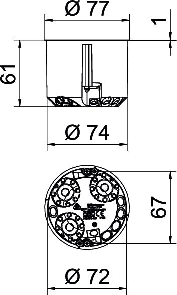Вид защиты IP30 Вид прохода через корпус Продавливаемое отверстие воздухонепроницаемая нет Высота 61 mm Диаметр 74 mm Диаметр фрезерного отверстия 74 mm Для труб диаметром 20/25 мм Количество вводов 9 Комбинированные вводы Ø 20 / 25 мм 3 Крепление крышки Болты Крепление устройств Болты Крышка без Линейные вводы 3 x 1,5 мм² 1 Линейные вводы 3 x 2,5 мм² / 5 x 1,5 мм² 3 Линейные вводы 5 x 2,5 мм² / 7 x 1,5 мм² 2 Материал Полипропилен Не содержит галогенов да Номинальное сечение макс. 2,5 mm² Номинальное сечение мин. 1,5 mm² Подходит для пластин толщиной макс. 40 mm Подходит для пластин толщиной мин. 5 mm Размер Ø74mm, H61mm Расчетное напряжение 400 V С винтами да С переходником без Способ ввода Провода NYM и трубы Трудновоспламеняющийся согласно VDE 0471/IEC 60695-2-11, температура при испытании 850 °C Углеродный след CO2 (GWP) от колыбели до ворот 0,0809 кг CO2e / 1 Шт. Ударопрочность нет Форма круглой формы Цвет оранжевый Число вставок 1 - Все виды