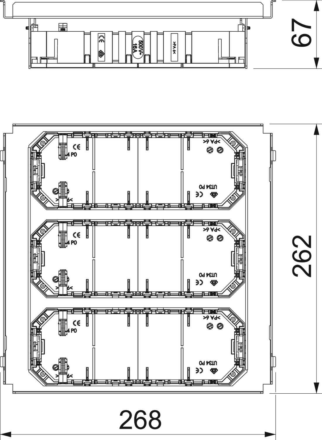 Высота 67 mm Длина 268 mm Исполнение в форме держателя Количество вводов 4 Количество встраиваемых устройств 12 Количество разгрузок от натяжения 6 Материал Сталь Поверхность оцинкован конвейерным методом Размер 262x262x65 Углеродный след CO2 (GWP) от колыбели до ворот 4,3077 кг CO2e / 1 Шт. Ширина 262 mm - Все виды