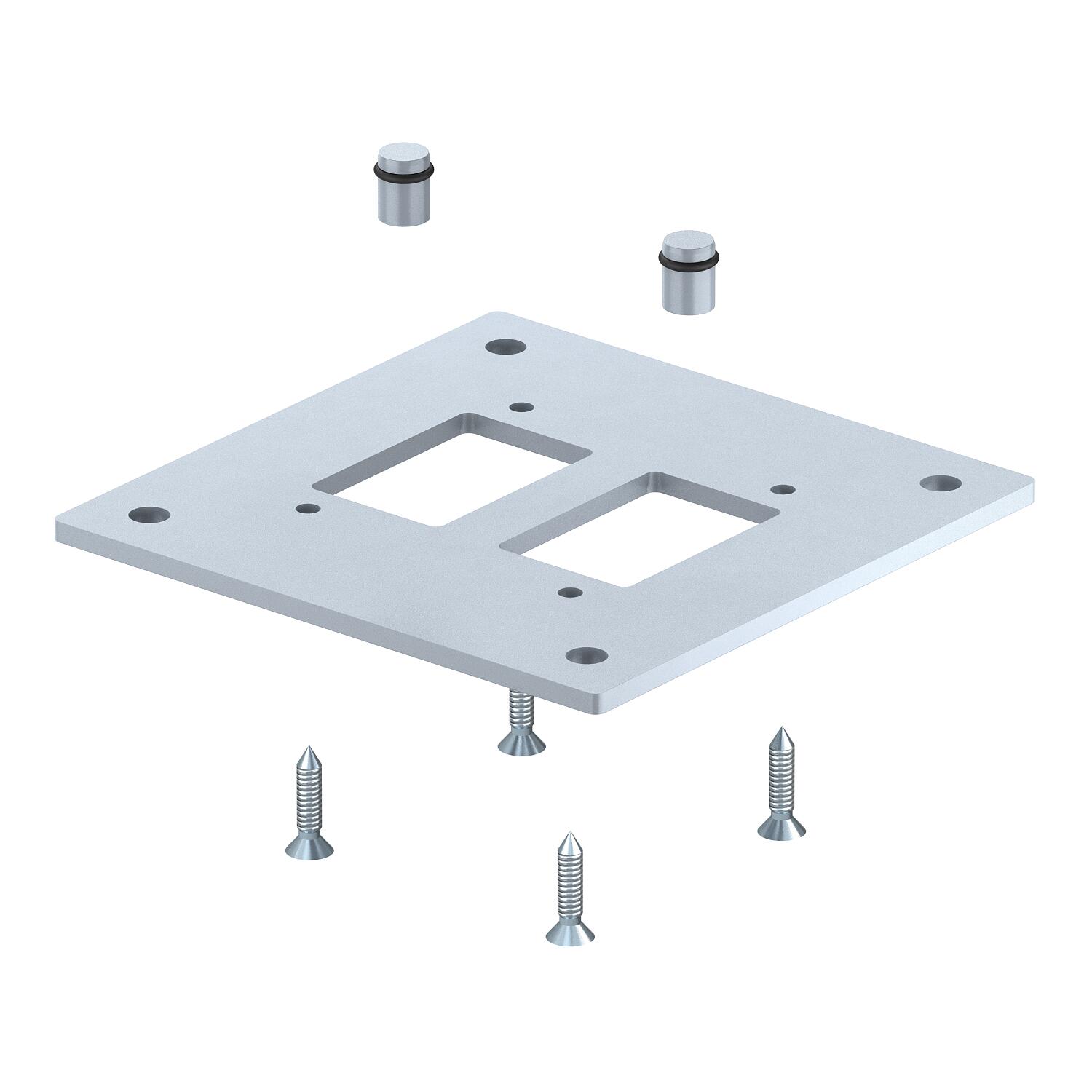 Описание продуктаНапольная пластина для крепления монтажных колонн на полу. В комплект поставки входят 4 крепежных болта для крепления напольной пластины в профиль колонны и 2 уплотнителя для герметизации каналов подвода сжатого воздуха.