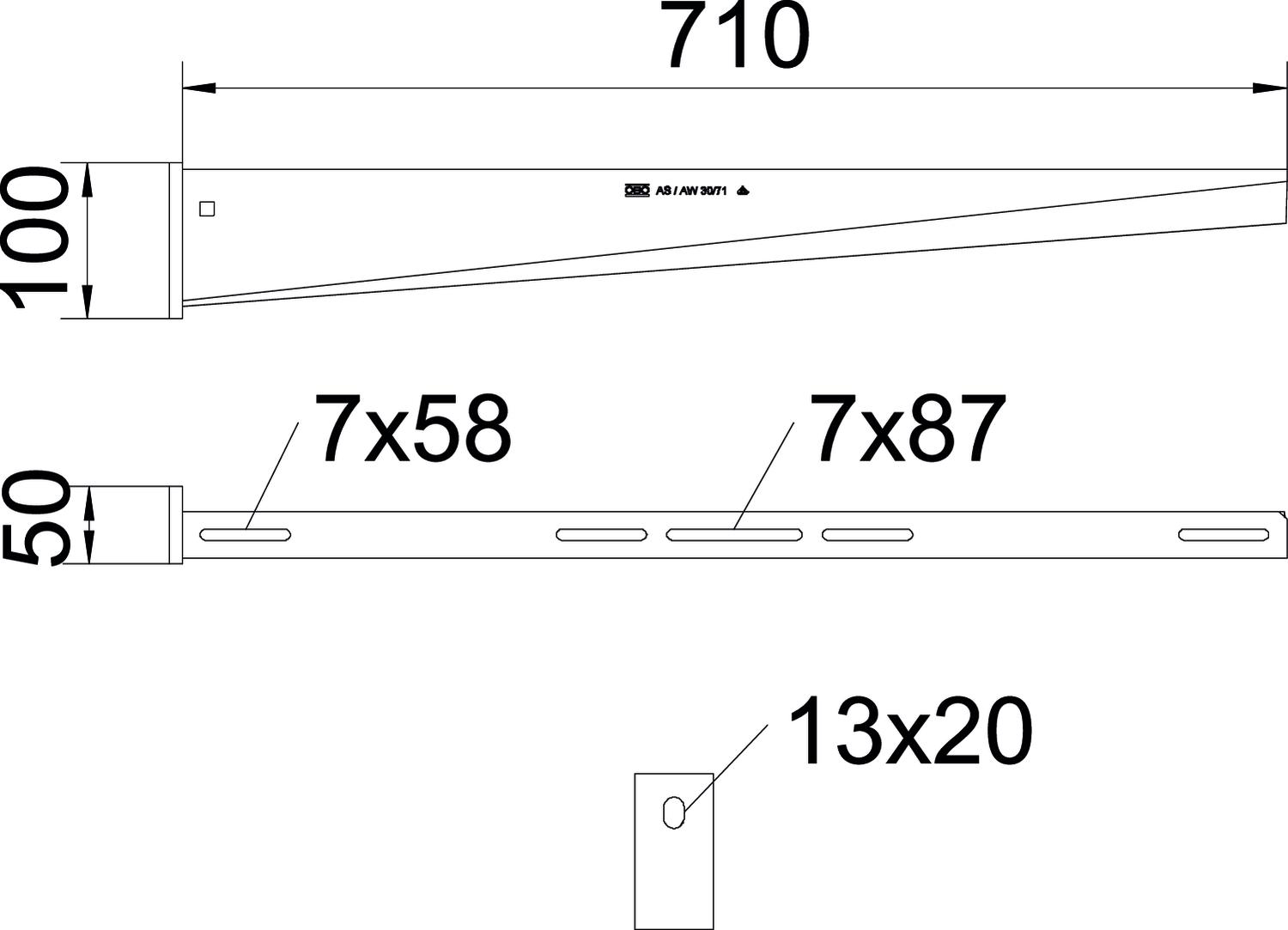 Высота 100 mm Диаметр отверстия 13 mm Длина 50 mm Исполнение Настенный и опорный кронштейн Материал Сталь Нагрузка (F) кН 3 kN Нержавеющая сталь, протравленная нет Поверхность Горячее цинкование методом погружения Повышение живучести конструкции нет Размер Н 100 mm Размер B710mm Размер B 710 mm Размер A 50 mm Углеродный след CO2 (GWP) от колыбели до ворот 5,4587 кг CO2e / 1 Шт. Угловой диапазон макс. 90 mm Угловой диапазон мин. 90 mm Цвет цинковый Ширина 710 mm Технические данные