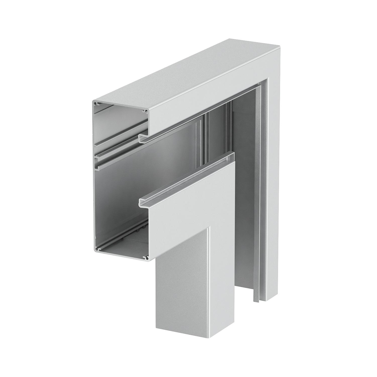 Описание продуктаНисходящий плоский угол для изменения направления коробов для монтажа электроустановочных изделий Rapid 80 GA, алюминий, поставляется без крышки.