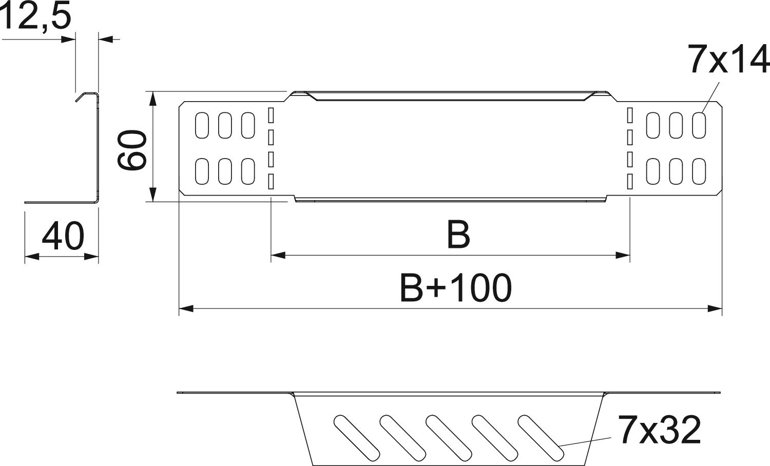 Описание продуктаРедукционный угол и концевая пластина для кабельных лотков, высота боковой стенки которых составляет 60 мм.