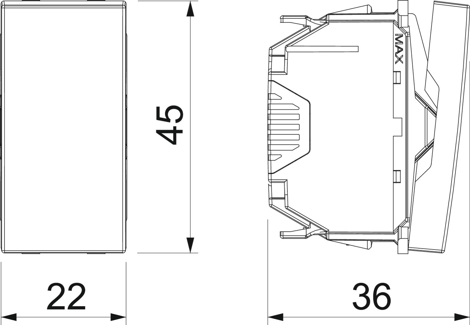 Вид крепления einrasten Вид монтажа Кабельный канал Высота 45 mm Глубина 36 mm Конструкция поверхности матовый Материал Поликарбонат Номинальное напряжение 250 V Номинальный ток 10 A Размер 10 A, 250 V Цвет цвет: черный; RAL 7021 Ширина 22,5 mm - Все виды