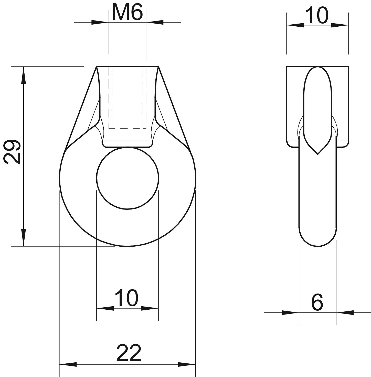 Диаметр d 10 mm Длина резьбы 13 mm Материал Литье из цинкового сплава под давлением Метрическая резьба 6 Поверхность гальванически оцинкованный Размер M6 Размер b 6 mm Размер BØ 10 mm Размер D 22 mm Размер L 29 mm Разрушающая нагрузка 1,15 kN Углеродный след CO2 (GWP) от колыбели до ворот 0,0576 кг CO2e / 1 Шт. - Все виды
