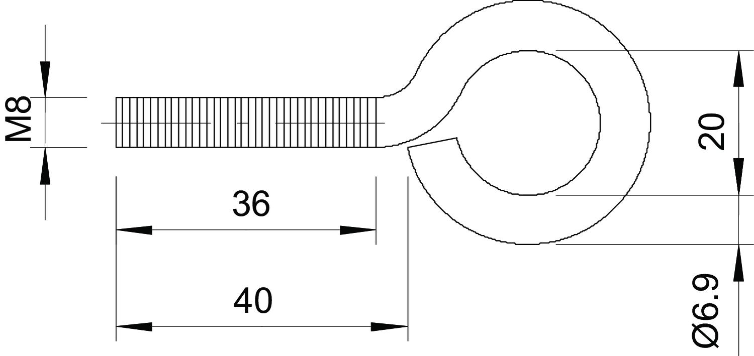 В пластмассовой оболочке нет Диаметр крючка 20 mm Длина 70 mm Длина резьбы 36 mm Длина стержня 40 Материал Сталь Поверхность гальванически оцинкованный Размер M8x40mm Разрушающая нагрузка 2 kN Резьба M8 - Все виды