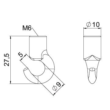 Диаметр 10 mm Диаметр крючка 9 mm Длина 27,5 mm Длина резьбы 9 mm Материал Сталь Поверхность гальванически оцинкованный Размер M6 Разрушающая нагрузка 0,65 kN Резьба M6 Углеродный след CO2 (GWP) от колыбели до ворот 0,0245 кг CO2e / 1 Шт. - Все виды