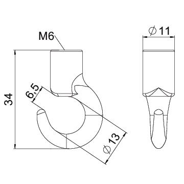 Диаметр 11 mm Диаметр крючка 13 mm Длина 34 mm Длина резьбы 9 mm Материал Сталь Поверхность гальванически оцинкованный Размер M6 Разрушающая нагрузка 0,8 kN Резьба M6 Углеродный след CO2 (GWP) от колыбели до ворот 0,039 кг CO2e / 1 Шт. - Все виды