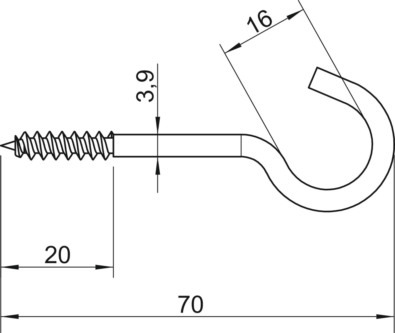 В пластмассовой оболочке нет Диаметр крючка 16 mm Диаметр материала 3,9 mm Длина 70 mm Длина резьбы 20 mm Материал Сталь Поверхность гальванически оцинкованный Размер L1 мм 20 mm Размер 3,9x70mm Размер L 70 mm Разрушающая нагрузка 0,15 kN - Все виды