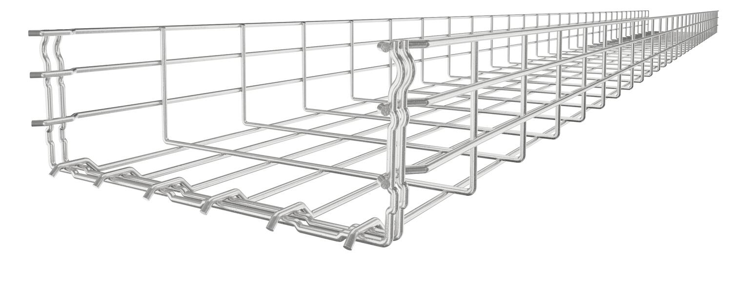 Для проволочных лотков не нужны дополнительные соединительные детали, так как они просто вставляются один в другой. Ширина ячеек составляет 50 х 100 мм.