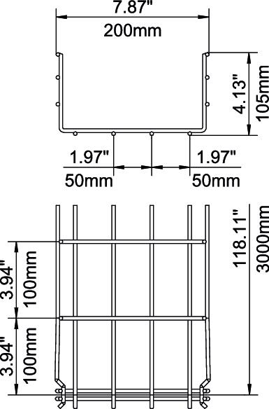 Для проволочных лотков не нужны дополнительные соединительные детали, так как они просто вставляются один в другой. Размер ячеек составляет 50 х 100 мм.