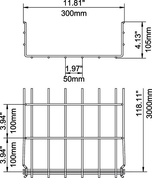 Для проволочных лотков не нужны дополнительные соединительные детали, так как они просто вставляются один в другой. Ширина ячеек составляет 50 х 100 мм.