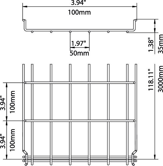 Для проволочного лотка не нужны дополнительные соединительные детали, так как его секции просто устанавливаются одна в другую. Размер ячеек составляет 50 x 100 мм (исключение GRM 35/50 = 20 x 100 мм).