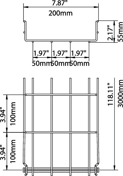 Описание продуктаПроволочный лоток с соединителем соответствующей формы со сторонами выстой 55 мм.