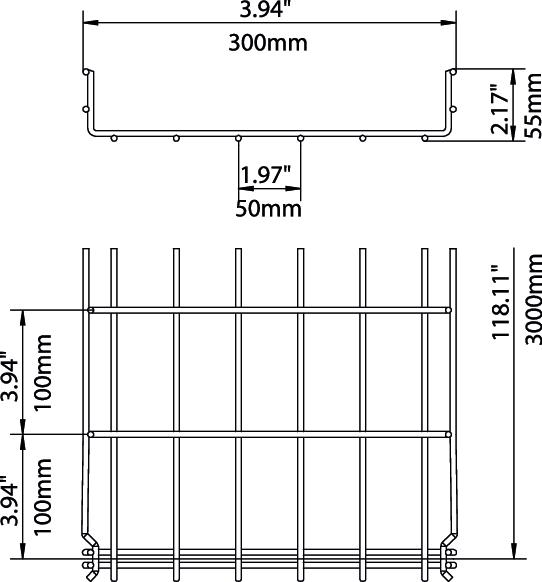 Для проволочного лотка не нужны дополнительные соединительные детали, так как его секции необходимо просто установить одну в другую. Размер ячеек составляет 50 x 100 мм (исключение GRM 55/50 = 20 x 100 мм).