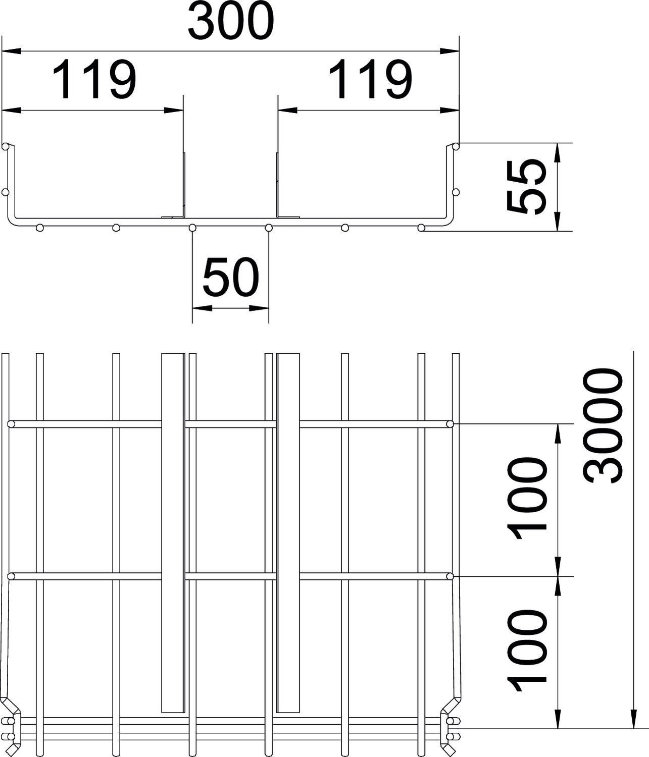 Для проволочных лотков не нужны дополнительные соединительные детали, так как они просто вставляются один в другой. Ширина ячеек составляет 50 х 100 мм.