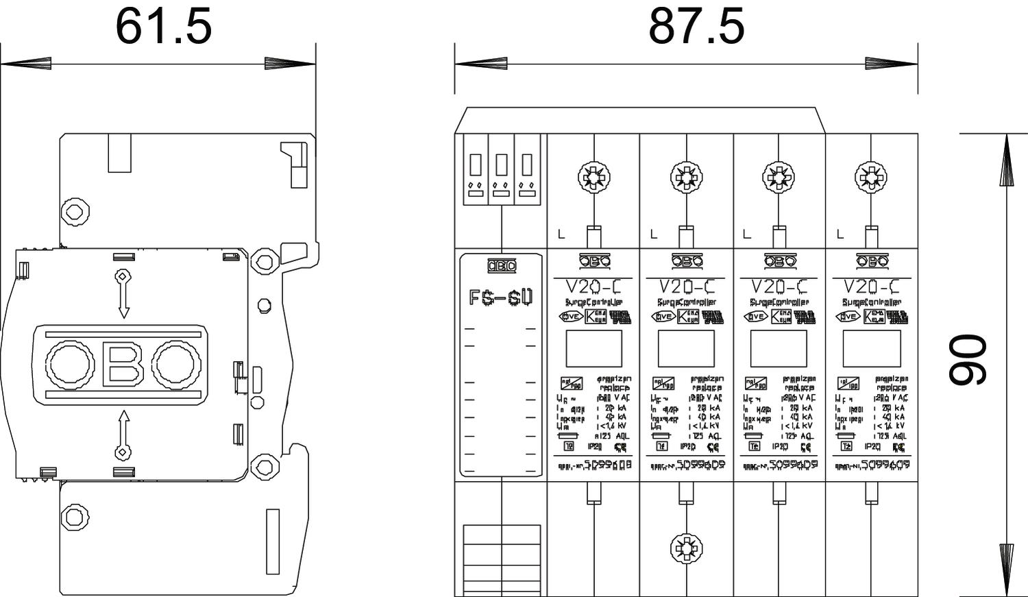Описание продуктаV 20-C/...: Разрядник для защиты от перенапряжения тип 2 (класс C) согласно EN 61643-11 (VDE 0675 часть 6-11). Готово к подключению, с дистанционной сигнализацией и контролем напряжения.