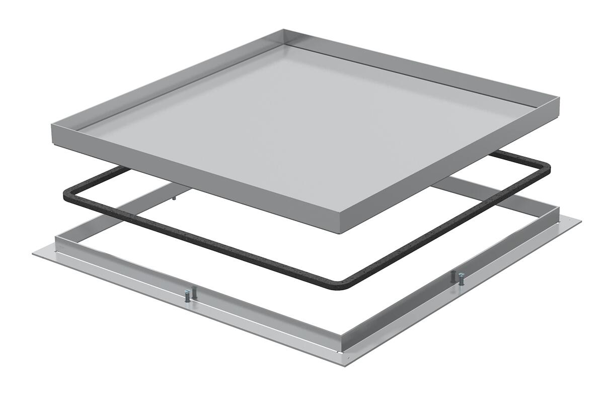 Описание продуктаКассетная рамка, глухая, для формирования ревизионного отверстия в UZD350-3 в полах с сухим или влажным типом уборки во внутренних помещениях. Подходит только для гладких напольных покрытий.