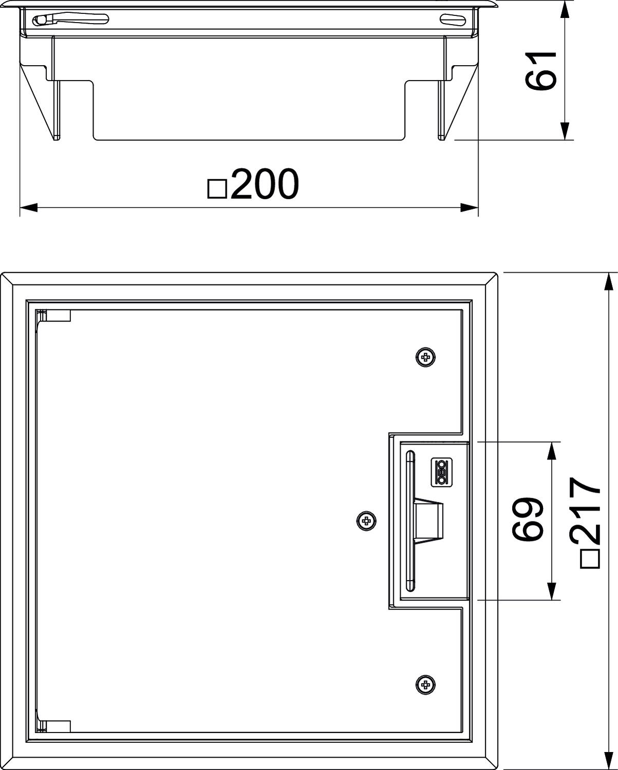Электромонтажный лючок GES2, с ручкой, 1-секционный, для установки монтажной коробки MT4. Могут быть установлены 2 накладки APMT2.
