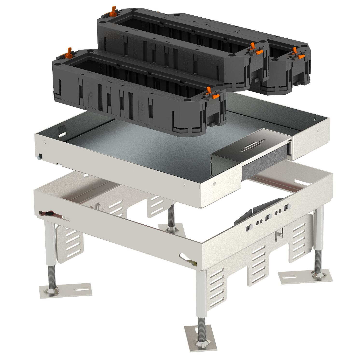 - три универсальные рамки UT4/45 для четырех встроенных электроустановочных изделий Modul 45®.Кассета и выпуск кабеля из благородной стали.