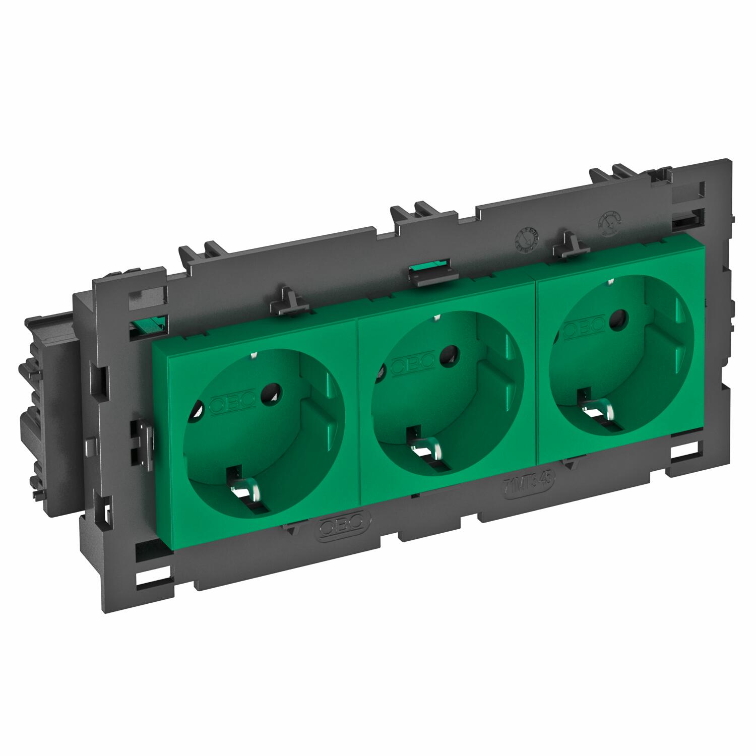 Описание продуктаРозетка с заземляющим контактом, тройная 0°, с боковым подключением, с защитными шторками, с автоматическими клеммами, 2-полюсная, 16 A, 250 V~, соединительные клеммы соответствуют стандарту IEC 60884-1, подходит для установки в кабельных коробах Rapid 80.