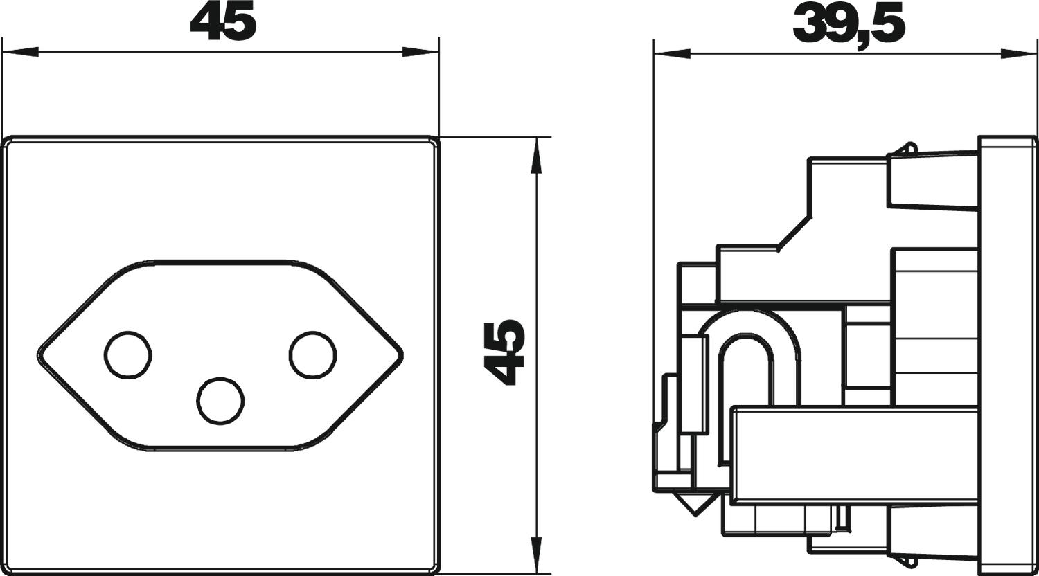 Описание продуктаОдинарная розетка 0°, швейцарский стандарт (SEV), с защитными шторками, 2-полюсная,