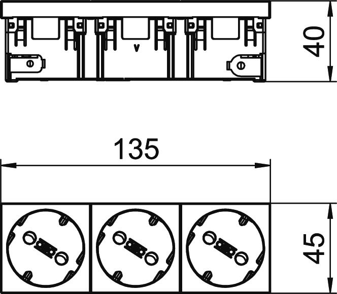 Описание продуктаРозетка с заземляющим контактом тройная 33°, с повышенной защитой от прикосновений, со вставными клеммами, 2-полюсная, 16 A, 250 V~, с соединительными зажимами согласно IEC 60884-1.