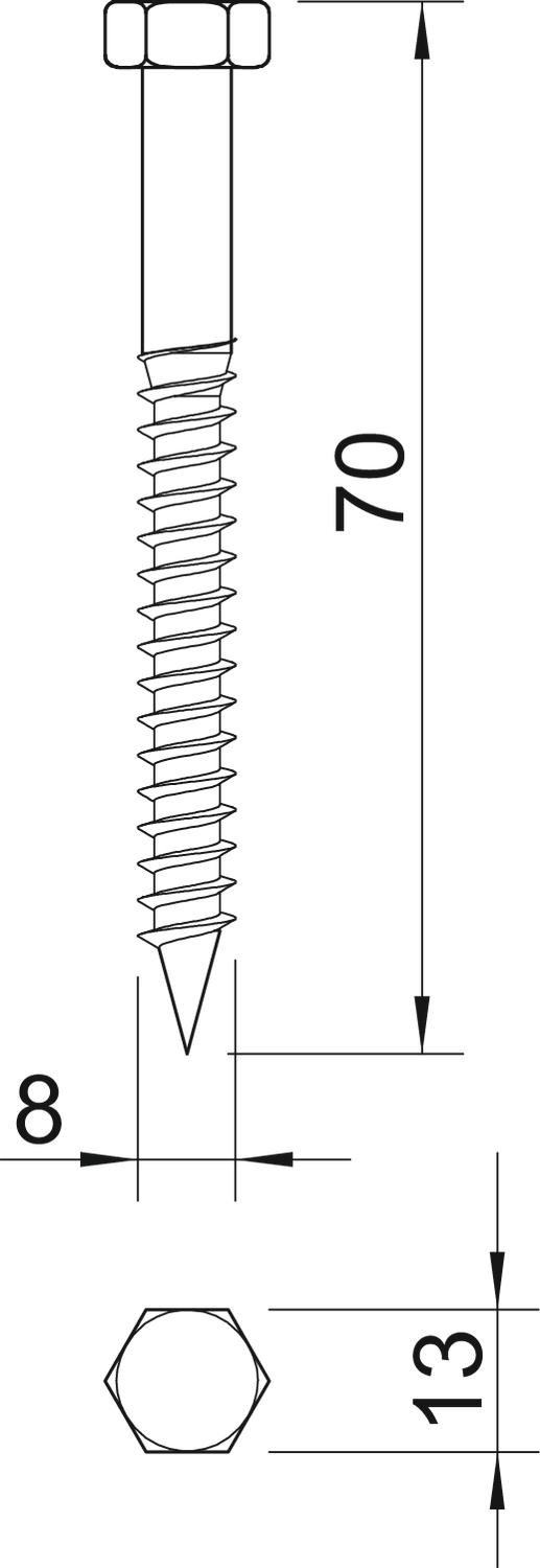 Описание продуктаВинт с шестигранной головкой по DIN 571 с резьбой по дереву. Подходит для дюбелей типа 910.