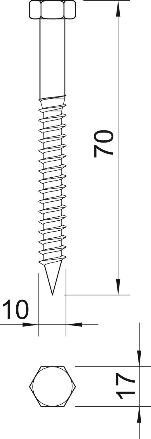 Описание продуктаВинт с шестигранной головкой по DIN 571 с резьбой по дереву. Подходит для дюбелей типа 910.