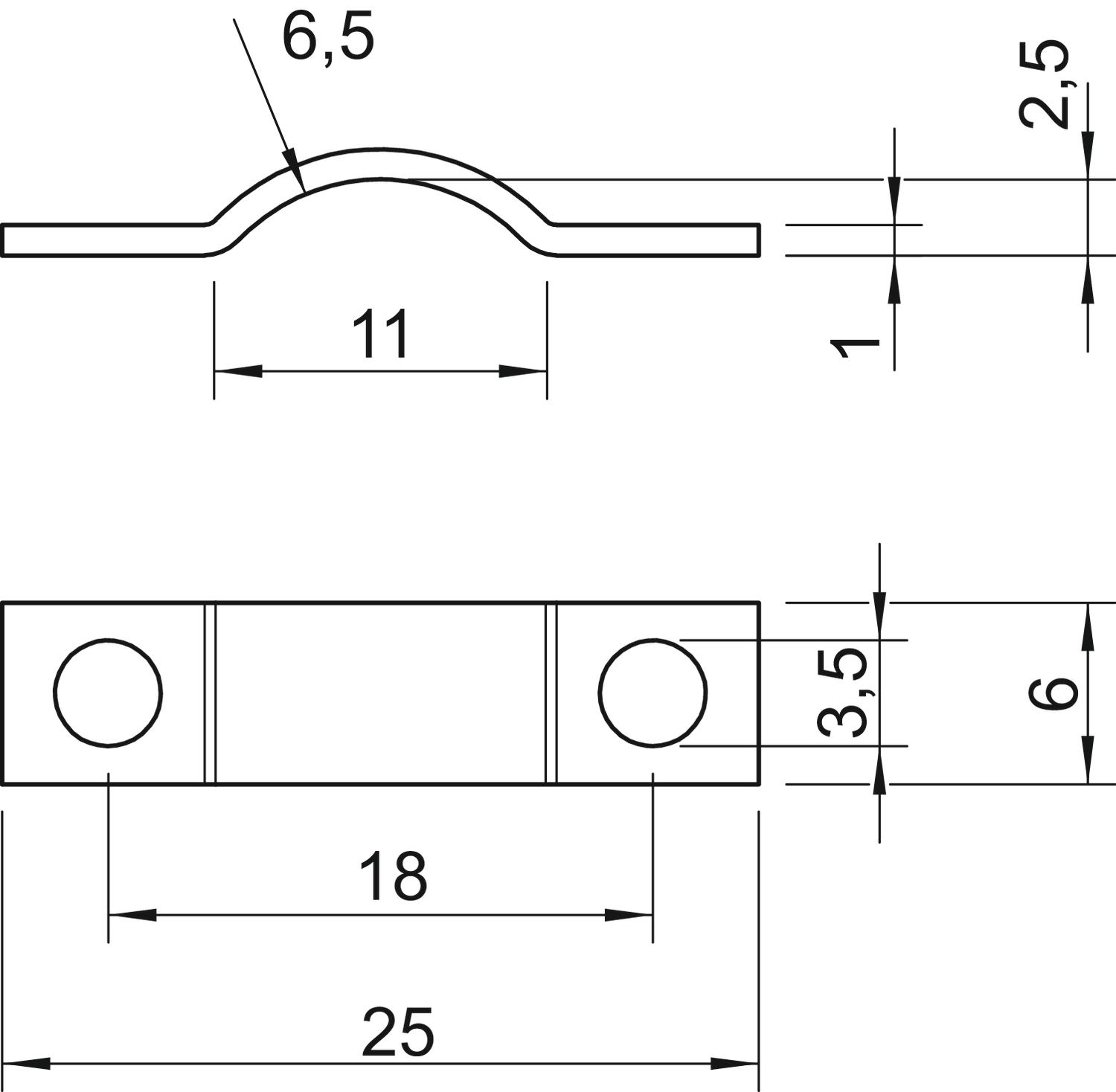 В пластмассовой оболочке нет Вид крепления отверстие под винт Высота 2,5 mm Диапазон зажима D макс. 6,5 mm Диапазон зажима D мин. 6,5 mm Длина 25 mm для диаметра 6,5 Исполнение С двумя лапками Количество кабелей/труб 1 Материал Сталь Не содержит галогенов да Поверхность гальванически оцинкованный Подходит для зоны противопожарной безопасности нет Прочность материала 1 mm Размер 6,5mm Размер a 11 mm Размер b 6 mm Размер h 2,5 mm Размер I 18 mm Размер отверстий 3,5 Размер d 3,5 mm Размер L 25 mm Размер R 6,5 mm Размер t 1 mm Расстояние до стены нет Углеродный след CO2 (GWP) от колыбели до ворот 0,0034 кг CO2e / 1 Шт. Устойчив к УФ да Ширина 6 mm - Все виды