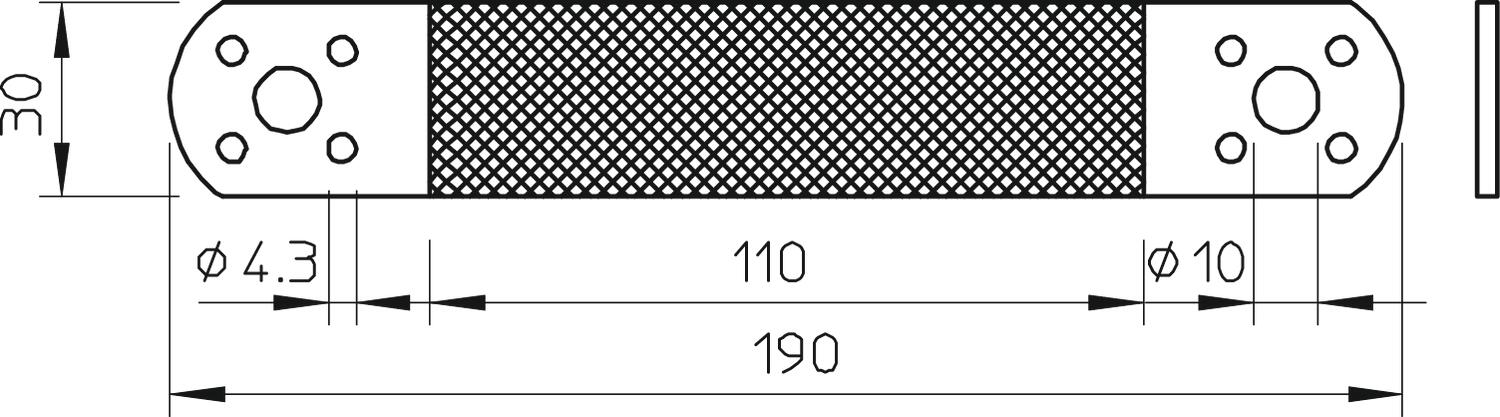 • по 1 монтажному отверстию Ø 10 мм с каждого конца и 4 монтажным отверстиям Ø 4,3 мм.