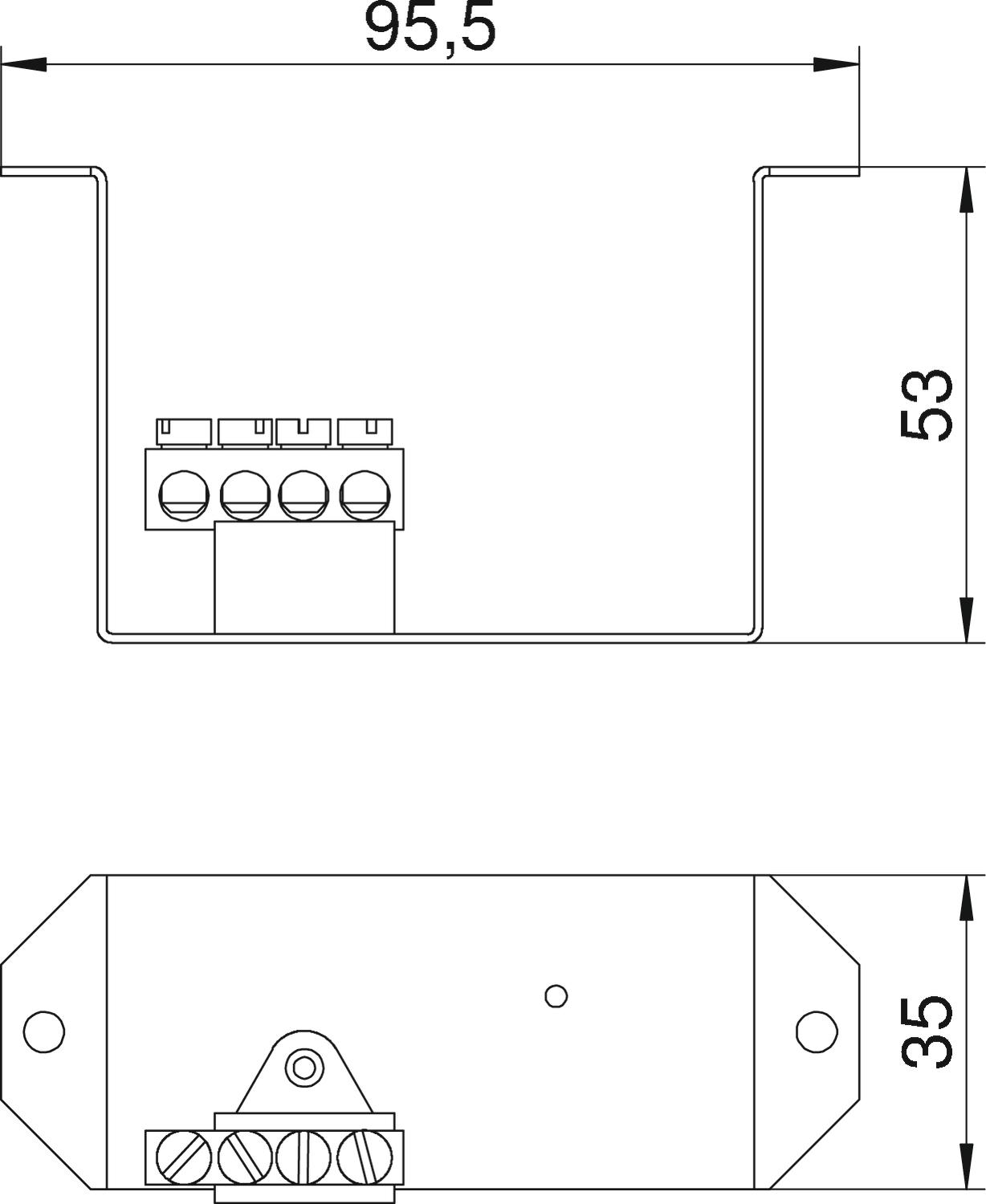 - базовый элемент для рейки 35 мм, с клеммной колодкой PE 4 x 10 мм²,