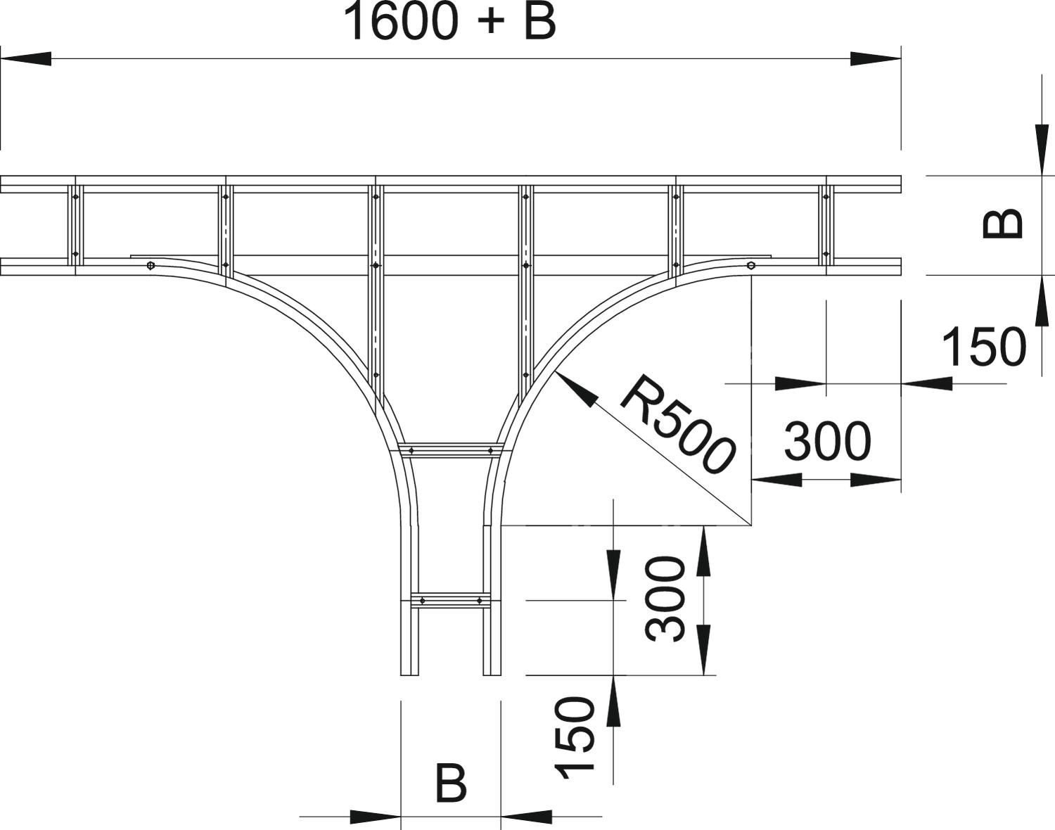 Описание продуктаT-образная секция горизонтальная, для всех кабельных лотков лестничного типа для больших расстояний с высотой боковой стенки 110 мм.