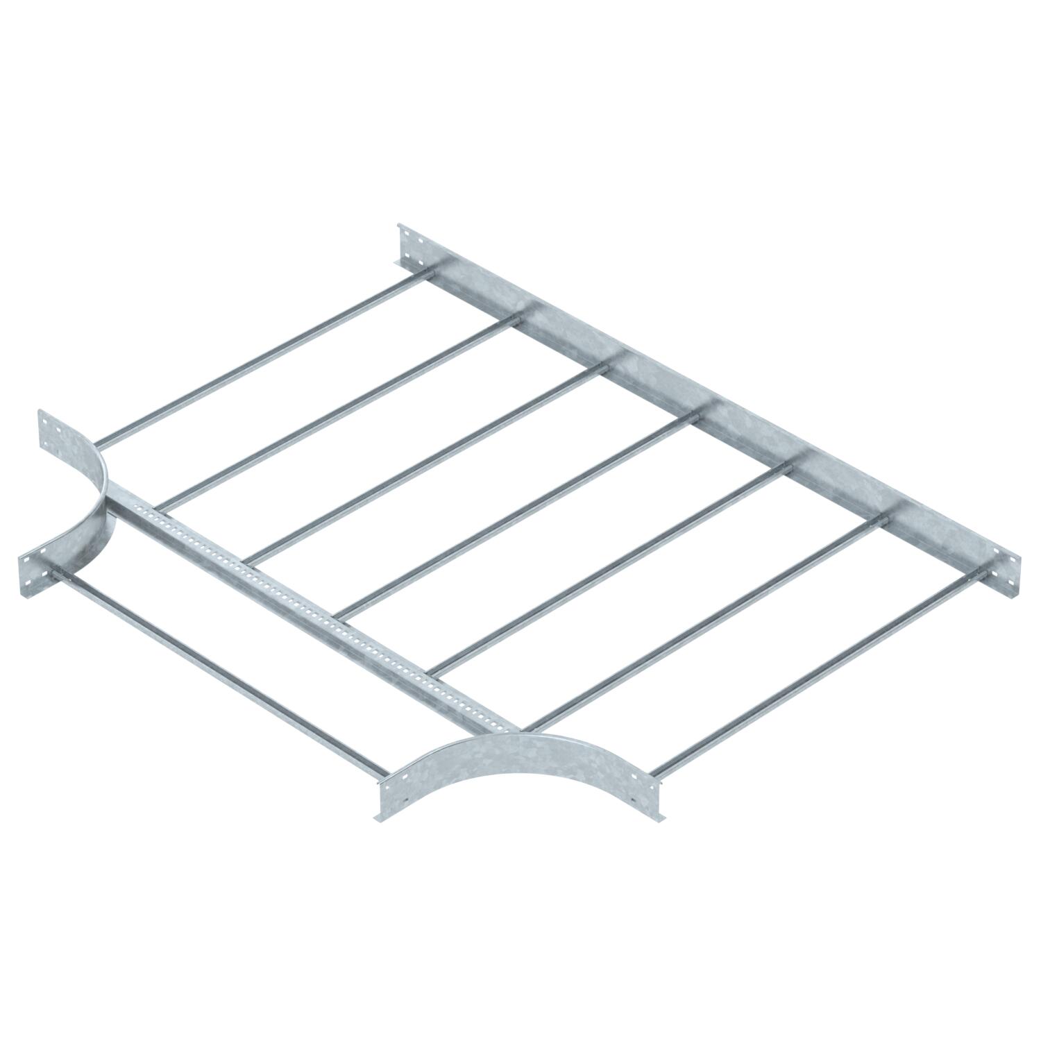 Описание продуктаТ-образная секция, горизонтальная, с приваренной перекладиной для монтажа на любых кабельных лотках лестничного типа с боковыми стенками высотой 110 мм.