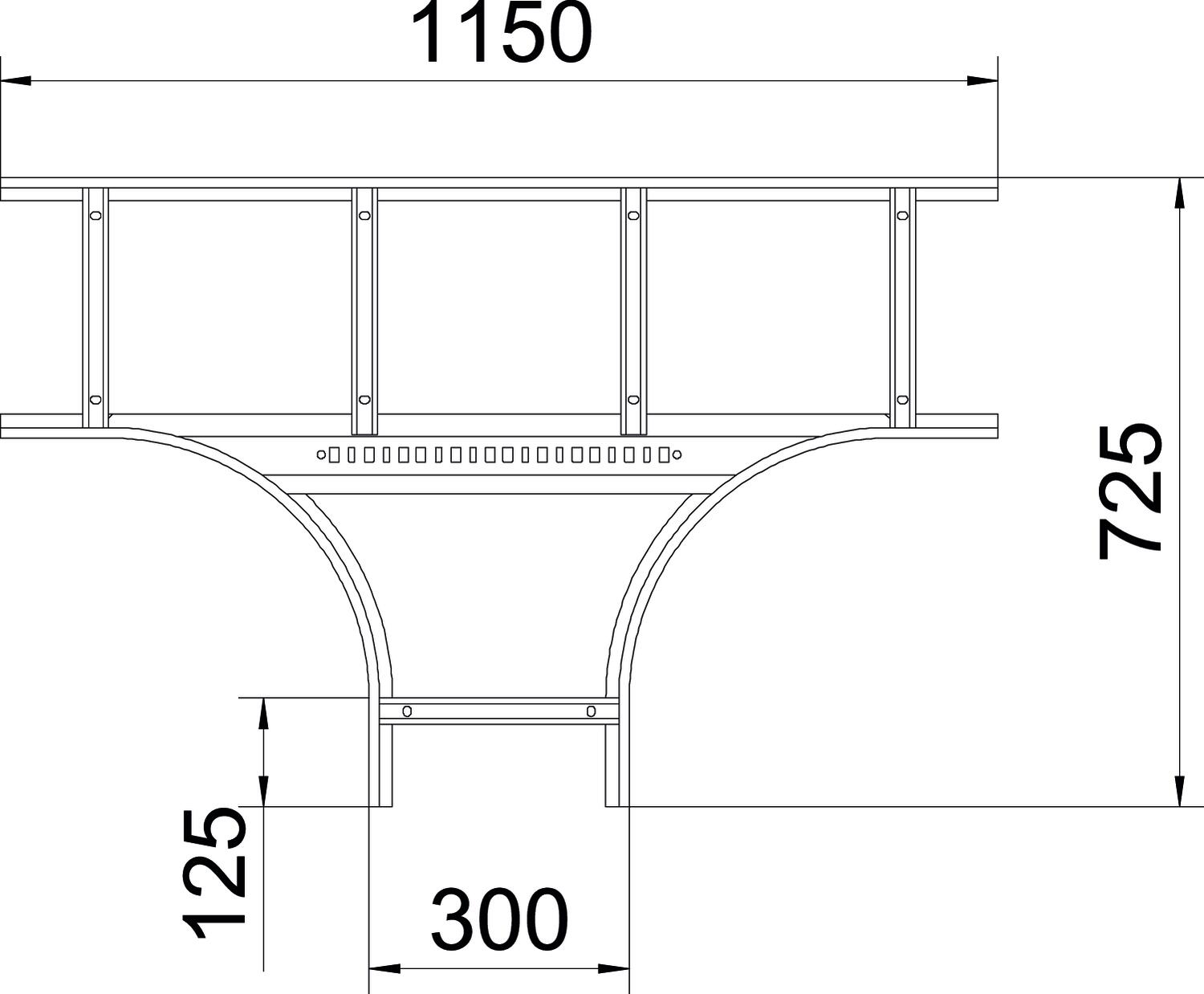 Описание продуктаТ-образная секция, горизонтальная, с приваренной перекладиной для монтажа на любых кабельных лотках лестничного типа с боковыми стенками высотой 110 мм.