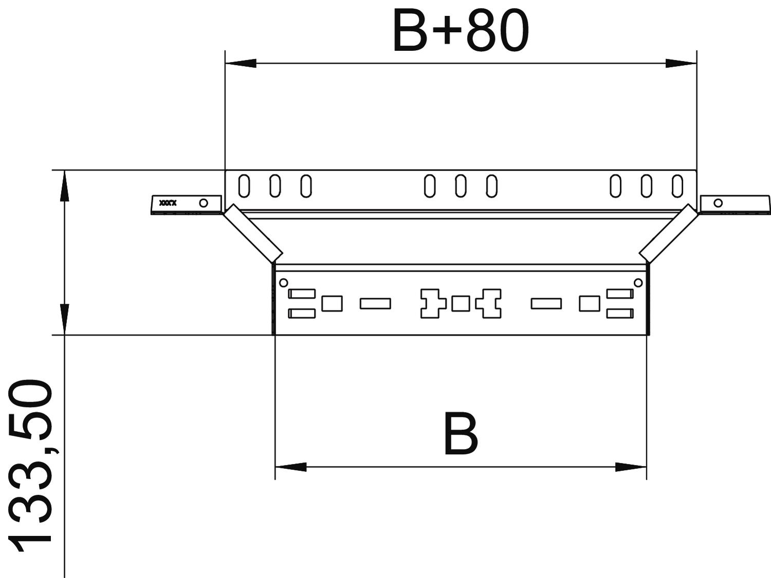 Описание продуктаТ-образное/крестовое соединение с системой соединителей для быстрого монтажа. Для всех типов кабельных лотков, высота боковой стенки которых составляет 85 мм.