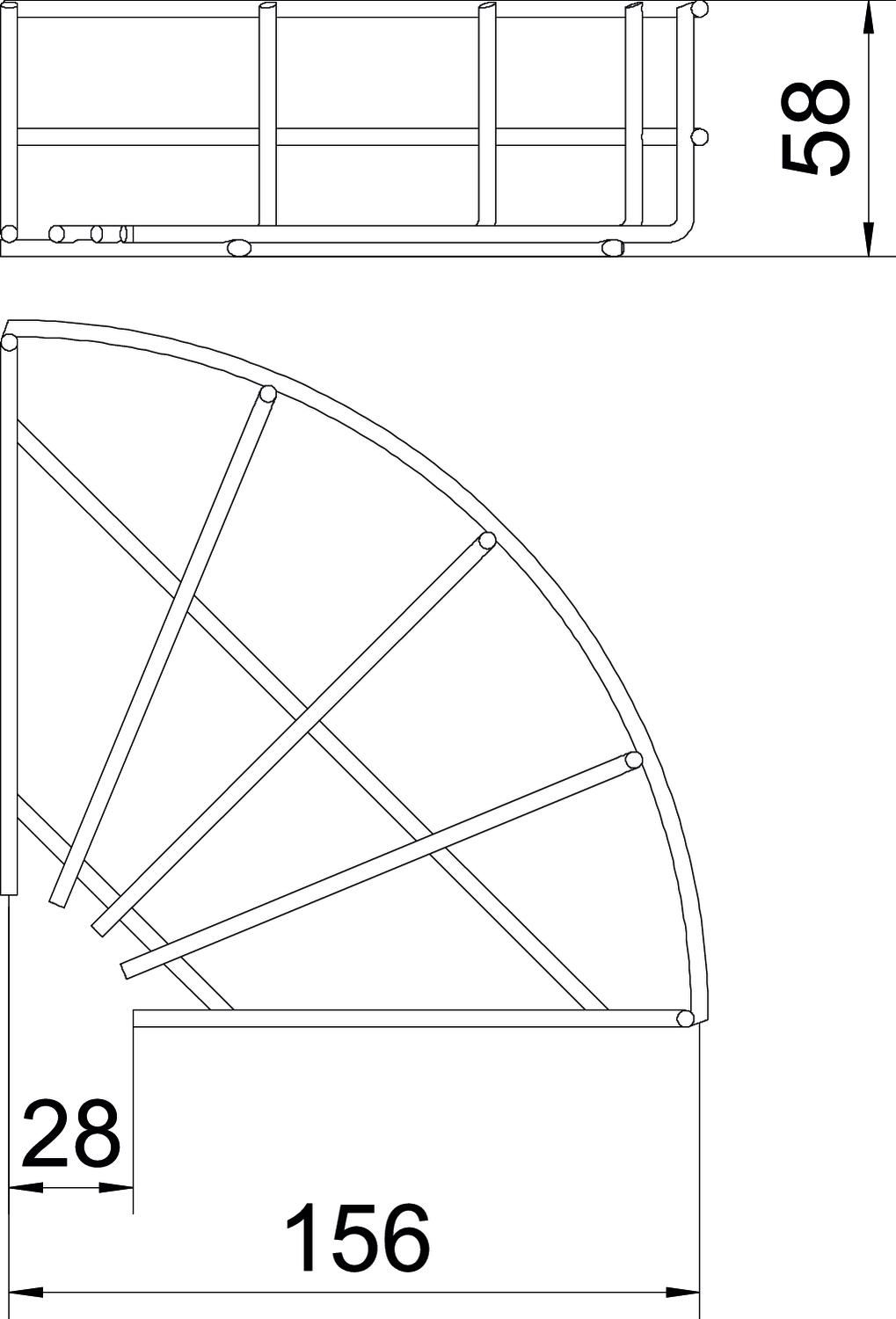 Описание продуктаГоризонтальная угловая секция 90° для проволочных лотков, высота боковой стенки которых составляет 55 мм.