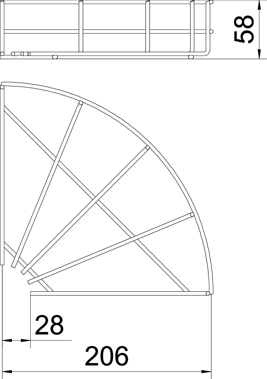 Описание продуктаГоризонтальная угловая секция 90° для проволочных лотков, высота боковой стенки которых составляет 55 мм.