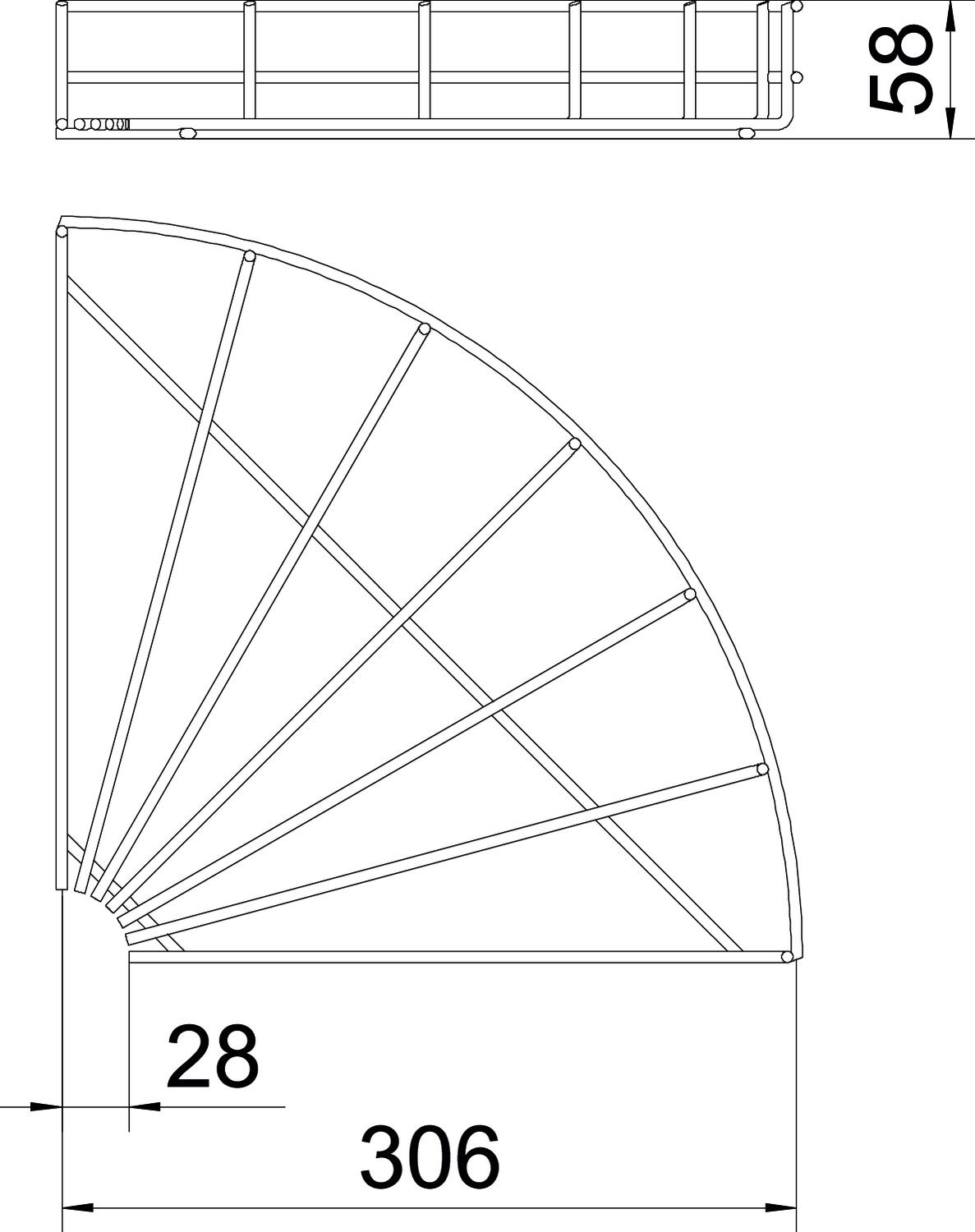 Описание продуктаГоризонтальная угловая секция 90° для проволочных лотков, высота боковой стенки которых составляет 55 мм.