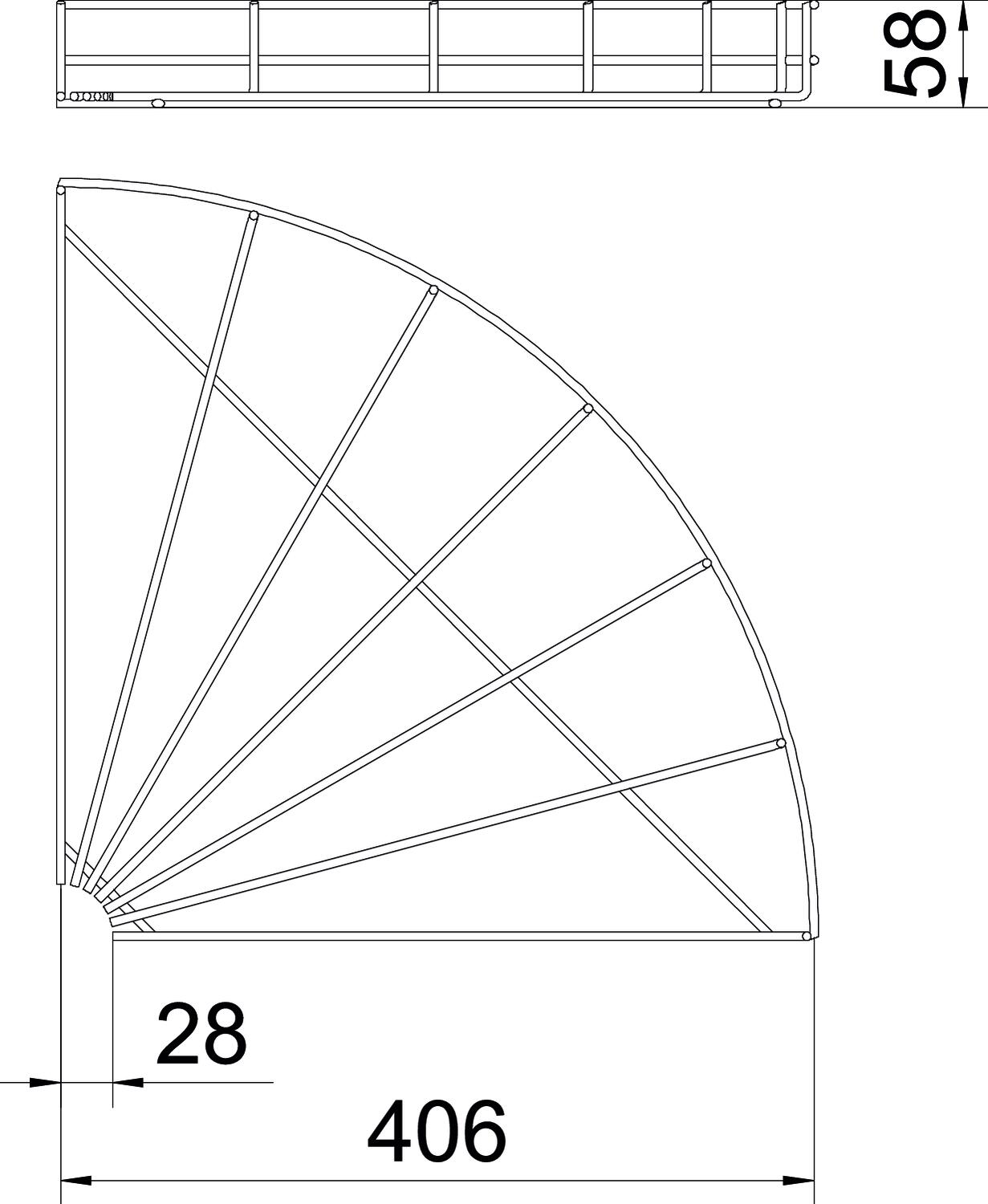 Описание продуктаГоризонтальная угловая секция 90° для проволочных лотков, высота боковой стенки которых составляет 55 мм.