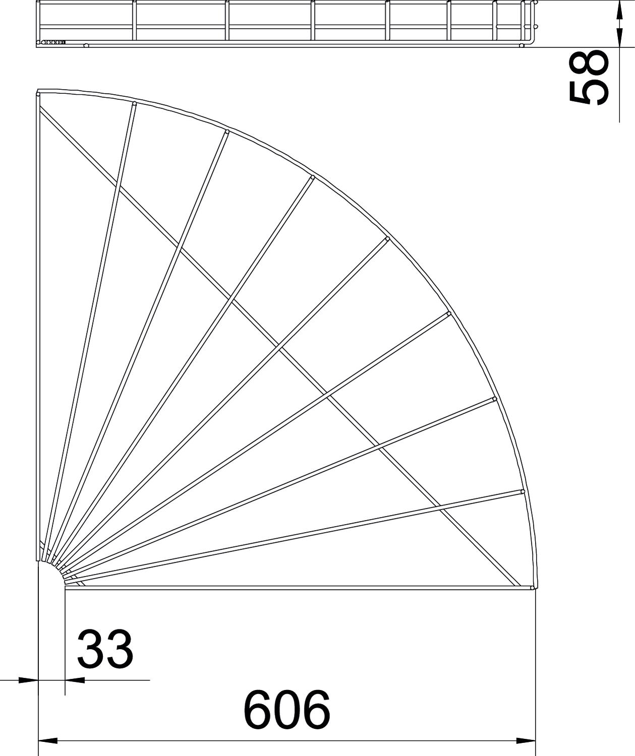 Описание продуктаГоризонтальная угловая секция 90° для проволочных лотков, высота боковой стенки которых составляет 55 мм.