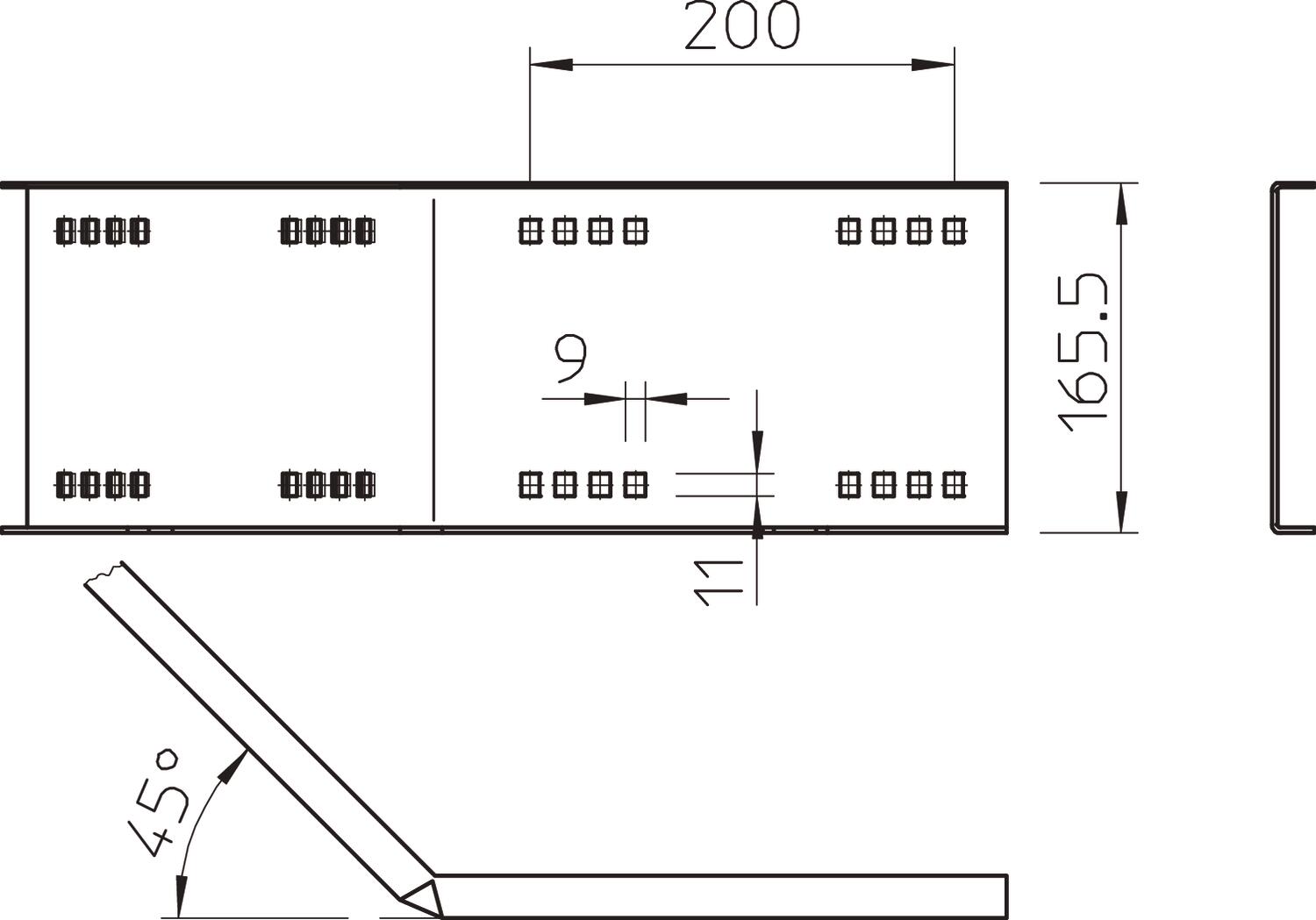 Описание продуктаГоризонтальный угловой соединитель 45° для листовых и лестничных лотков для больших расстояний (высота боковой стенки: 160 мм).