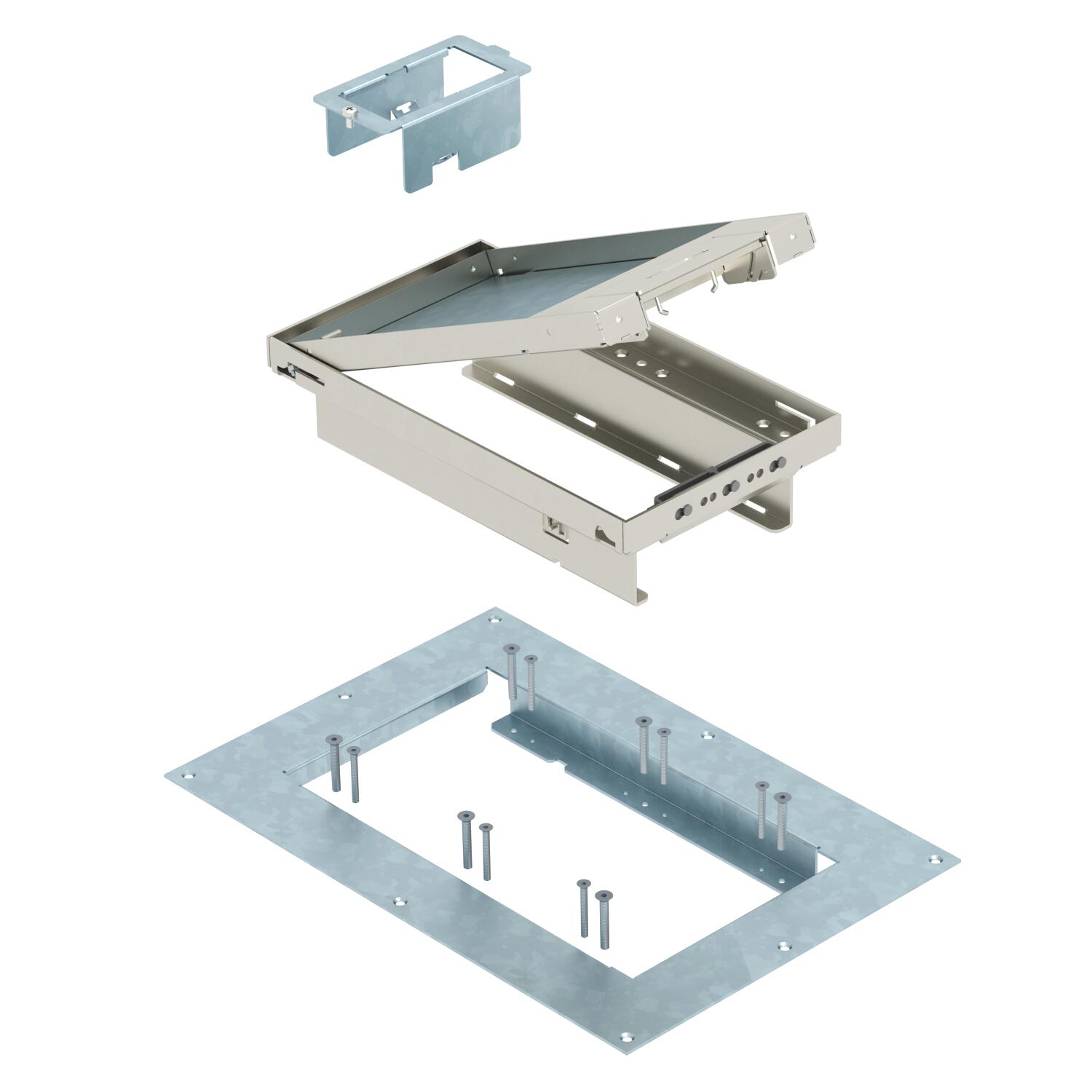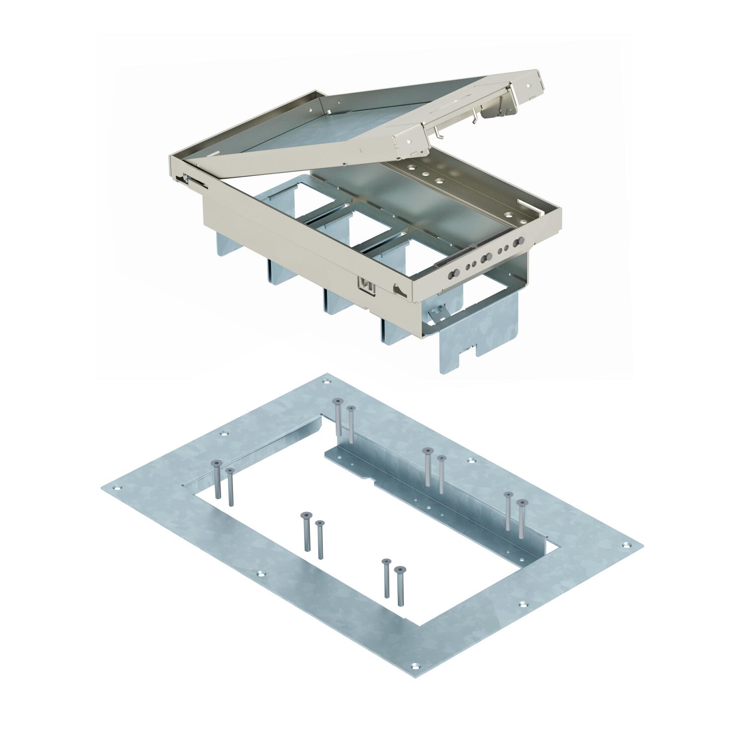 Описание продуктаРегулируемая по высоте кассета с выпуском кабеля для непосредственного монтажа в пустотных перекрытиях во внутренних помещениях.