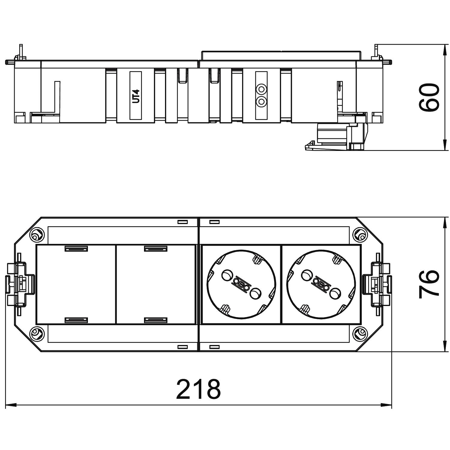 Описание продуктаУкомплектованная монтажная коробка UTC4 оснащена двумя розетками 33° с защитным контактом 16А и двумя глухими накладками для последующей установки двух электроустановочного изделия размером 45х45 мм серии Modul 45 или Modul 45connect. Подходит для подключения кабелей VL и лючков номинальных размеров R7, R9 и 9.